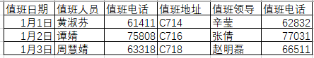 学院按照学校的统一部署,结合学院工作实际,统筹做好年度工作总结、期末考试组织、走访慰问等岁末各项工作。深入开展帮扶困难师生和送温暖活动,倾听他们的意见建议,了解他们的思想动态,积极为他们排忧解难。加强安全教育管理,师生离开学校驻地要严格执行请销假制度。假期前认真开展安全生产和自然灾害风险隐患排查,优化完善应急预案,做好应急处置准备。严格落实值班值守工作要求,确保联络畅通,突发事件报告、紧急事务处理及时到位,确保师生安全和校园稳定。值班安排如下: