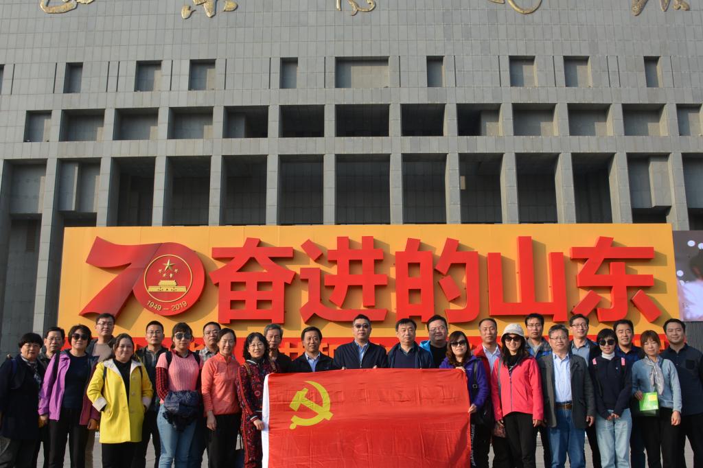 活动期间,教工们参观了《奋进的山东——庆祝中华人民共和国成立70周年成就展》。展览以“奋进的山东”为主题、以时间为主线,共分为“百废俱兴 艰苦创业”、“勇立潮头 砥砺前行”、“走在前列 全面开创”三部分,通过典型图片、实物资料、场景还原、动态演示、互动体验等多种方式全面展现了中华人民共和国成立70周年来山东人民群众取得的伟大成就和生产生活发生的巨大变迁。70年栉风沐雨,70年砥砺前行,70年春华秋实。70年来,奋进的山东始终在党中央坚强领导下,与时代同步,与祖国同行。