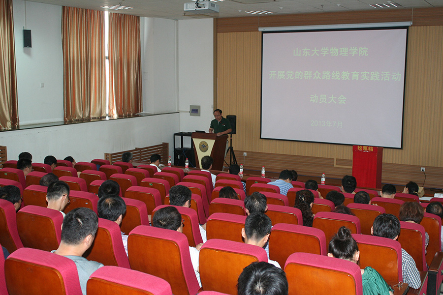 7月9日下午,山东大学物理学院深入开展党的群众路线教育实践活动动员大会在中心校区知新楼C座7楼量子报告厅召开。山东大学党的群众路线教育实践活动第9督导组组长、本科生院副院长、教学促进与发展中心主任张树永,山东大学党的群众路线教育实践活动第9督导组成员、后勤党委副书记崔玉红出席了动员会。此次会议由物理学院教育实践活动领导小组组长、党委书记李建平主持。