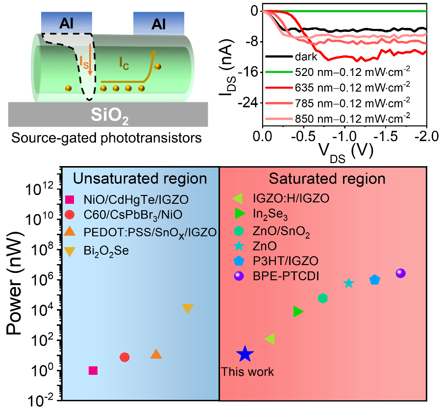 高功耗限制着新一代大面积、轻柔、多功能光电子器件的发展。近日,我院杨再兴教授课题组首次采用源栅晶体管(Source-gated transistor)成功构筑了超低功耗光电探测器,相关结果以“New Approach to Low-Power-Consumption, High-Performance Photodetectors Enabled by Nanowire Source-Gated Transistors”为题发表在《Nano Letters》(DOI: https://doi.org/10.1021/acs.nanolett.2c04013)期刊上。