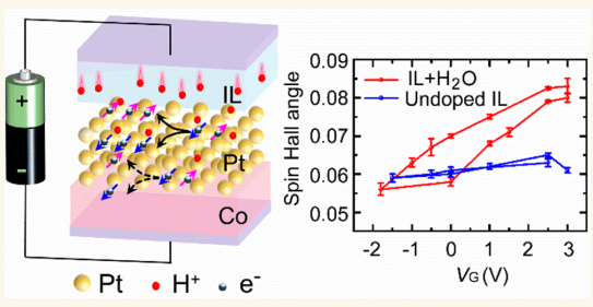 近日,我院胡季帆教授团队利用离子液体门电压控制氢离子在重金属铂表面的吸附和解吸,实现了对铂钴体系自旋霍尔效应(自旋霍尔角)的可逆非易失性操控。相关研究成果以“Electrical control of spin Hall effect in Pt by hydrogen ions adsorption and desorption”为题发表在《ACS Nano》期刊上。