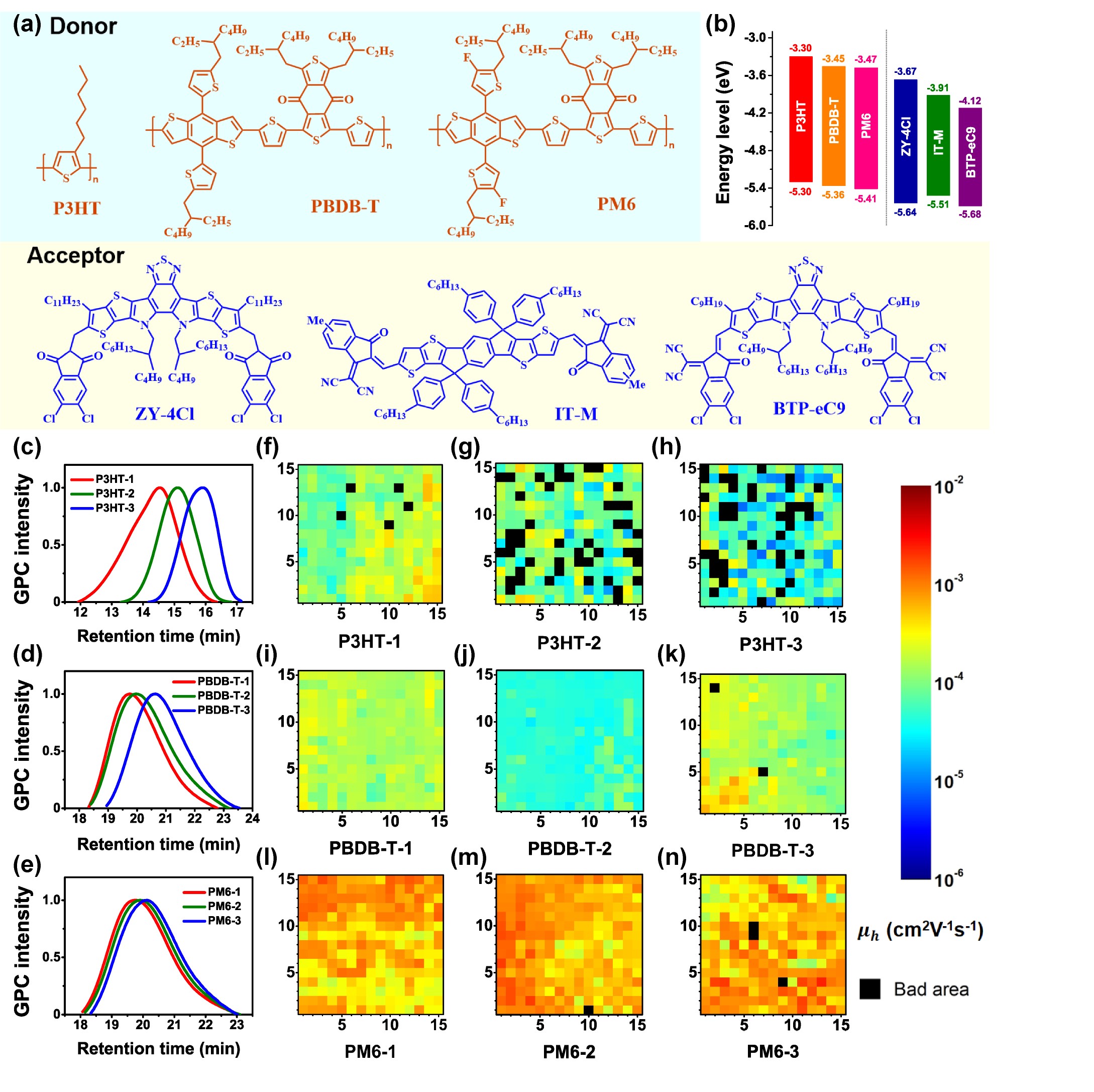 二、 时间和空间上的可重复性是有机电子器件的重要关注点之一。它包括大面积器件不同点位光电特性的差异以及不同批次器件性质的变化。具有形成电子和空穴传输双渗透网络的体异质结结构的有机光伏器件是要求优异重复性的典型案例。然而,目前薄膜电荷传输性质的表征手段均不适用于大面积有机体系。因此,发展衡量大面积器件重复性的手段并将这一问题与分子设计和电池制备技术相关联,对于有机电子器件的大规模普及和商业化的最终目标具有重要意义。