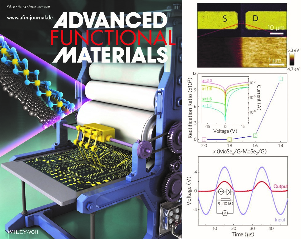 近日,我院陈峰教授团队在离子束材料改性与制备领域的研究中取得新进展,实现了离子束直接写入的二维集成二极管等元器件,相关工作以“Direct-Writing of 2D Diodes by Focused Ion Beams”为题发表在权威期刊Advanced Functional Materials(影响因子为16.836)上,并被选为期刊内封面(Inside Front Cover)。论文的第一作者为物理学院2019级博士研究生刘燕然,通讯作者为谭杨、陈峰教授,山东大学为第一作者单位和唯一通讯作者单位。