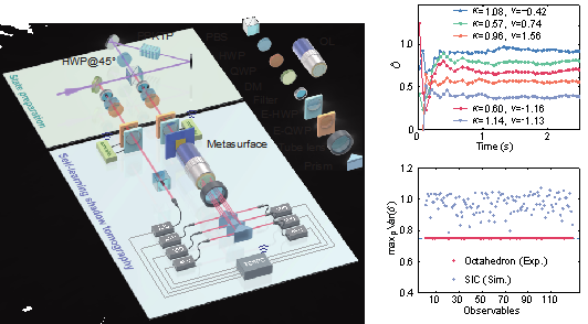 利用此超构表面的八面体POVM,研究团队进行了阴影层析(ST)实验。由于单次POVM测量就包含了完备的信息,仅需要几百毫秒就可以实现力学量算符的期望值估计,并且八面体POVM的采样复杂度不依赖于力学量算符形式(如下图所示)。