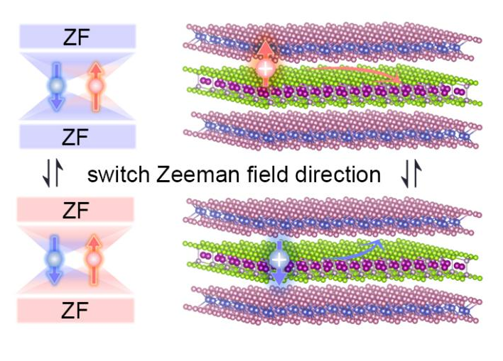 进展三:二维体系中的谷极化对于谷电子学的研究和应用具有重要意义。目前,该方面的研究主要建立在二维铁磁性系统的铁谷性范式上。针对这一局限性,团队提出了通过近邻效应引入塞曼场将铁谷范式扩展到二维反铁磁晶格的新机制。通过对称性分析,在低能k·p模型中引入近邻效应产生的塞曼场,诱导谷极化产生从而实现二维反铁磁系统中的铁谷性。基于第一性原理计算,团队在CrBr3封装的二维反铁磁体系MnPSe3中验证这一机制。这项工作为探索二维反铁磁材料中的能谷物理提供了有前景的平台。相关研究成果以“Ferrovalleytricity in a two-dimensional antiferromagnetic lattice”为题发表在Materials Horizons 国际期刊上。论文第一作者为2023级硕士生柴树妍,马衍东教授、戴瑛教授以及昆士兰科技大学的寇良志教授为共同通讯作者,山东大学为第一作者单位。