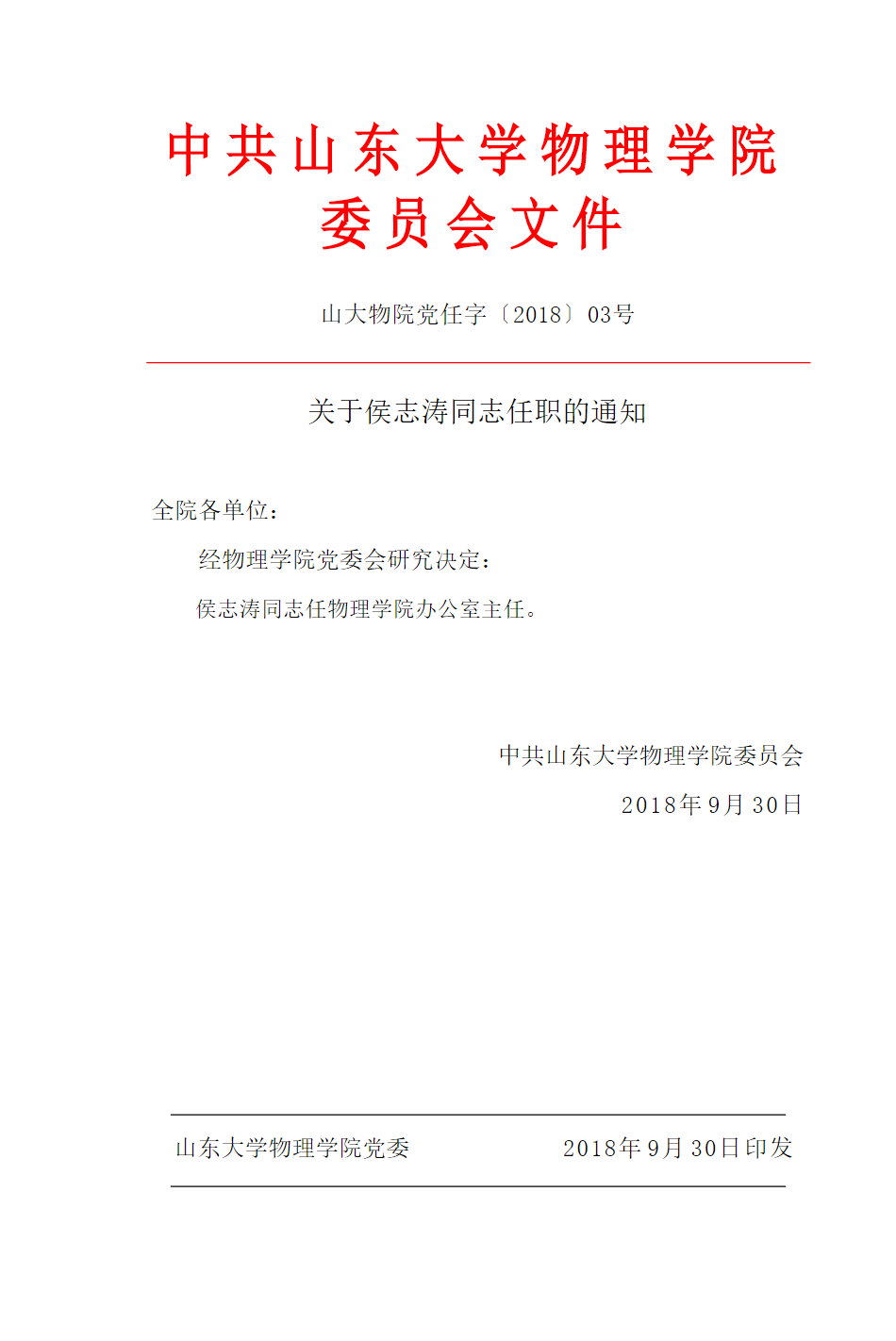 物理学院任免通知
