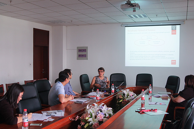 5月25日上午,澳大利亚斯威本科技大学(Swinburne University of Technology)理学院院长Sarah Maddison教授访问物理学院,该校国际部全球教育联盟与合作办公室副主任Marisa Furno女士陪同来访。
