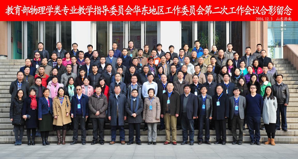 2016年12月3日,教育部物理学类专业教学指导委员会华东地区工作委员会第二次工作会议在山东省济南市召开,本次会议由教育部物理学类专业教学指导委员会主办,山东大学、南京大学和高等教育出版社承办,山东大学副校长胡金焱出席会议并致辞,来自华东地区约70所高校的100多位老师参加了本次会议。