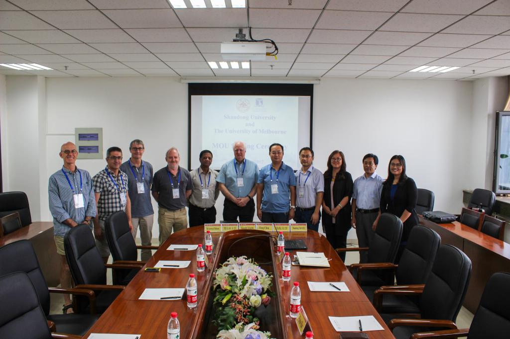 近日,山东大学“外专引智助飞计划-光子学国际联合实验室”合作项目的主要国际合作伙伴墨尔本大学代表团一行6人来我院进行为期一周的访问。代表团成员包括化学院前任院长Kenneth Ghiggino教授(英国皇家学会会士)、理学部副部长Muthupandian Ashokkumar教授、超快光谱实验室主任Trevor Smith教授、Dave Dunstan教授、Jonathan White教授以及John Sadder教授。同时还邀请了本项目的特别评审委员新加坡南洋理工大学Sam Zhang教授(国际薄膜学会主席)和新加坡国立大学 Li Lu教授,国际薄膜学会秘书长新加坡制造技术研究院高级科学家Guojun Qi博士、Zhaohong Huang博士,南洋理工大学Zhong Chen教授,香港浸会大学Furong Zhu教授也于同期访问。