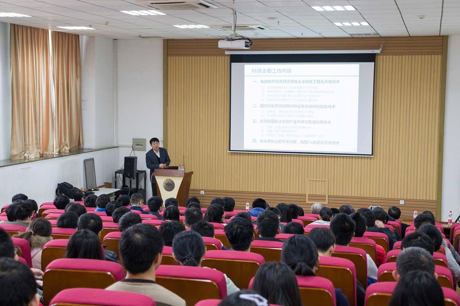 2017年12月22日下午,由山东大学研究生院、党委研究生工作部主办,山东大学物理学院承办的第71期(总第662期)“稷下风”研究生学术讲坛在知新楼C702量子报告厅举行。本期主讲人李卫院士,主题“稀土永磁材料及应用”,物理学院院长陈峰教授主持。