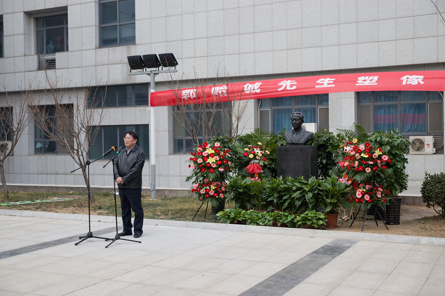 许继在发言中表达了自己发起塑像捐赠活动的的原因。郭先生在学术界的地位有目共睹,他希望能够通过此次捐赠鼓励同学们继续学习郭先生的科学精神,卧薪藏胆,振兴物理系。他还回忆了在母校求学时期,郭先生在学习、生活上都给予了他很大的帮助和肯定。他十分感谢学校和学院给予了他此次回馈母校、回报郭先生的机会。