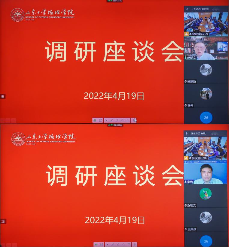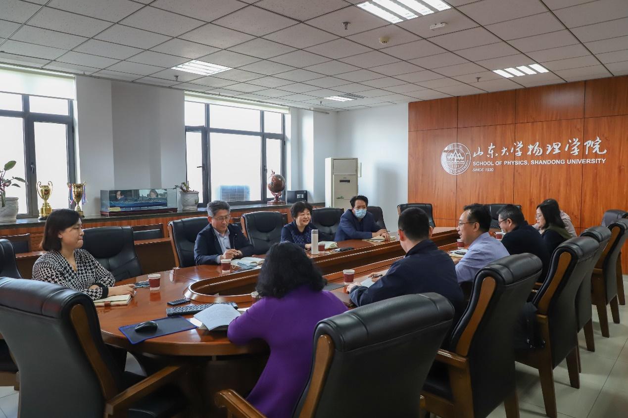 4月19日下午,校长樊丽明赴物理学院调研人才培养、科研发展、学生就业问题,本科生院院长曹现强、研究生院院长刘国亮和校长秘书陈菡陪同调研,物理学院领导班子成员参加调研座谈。