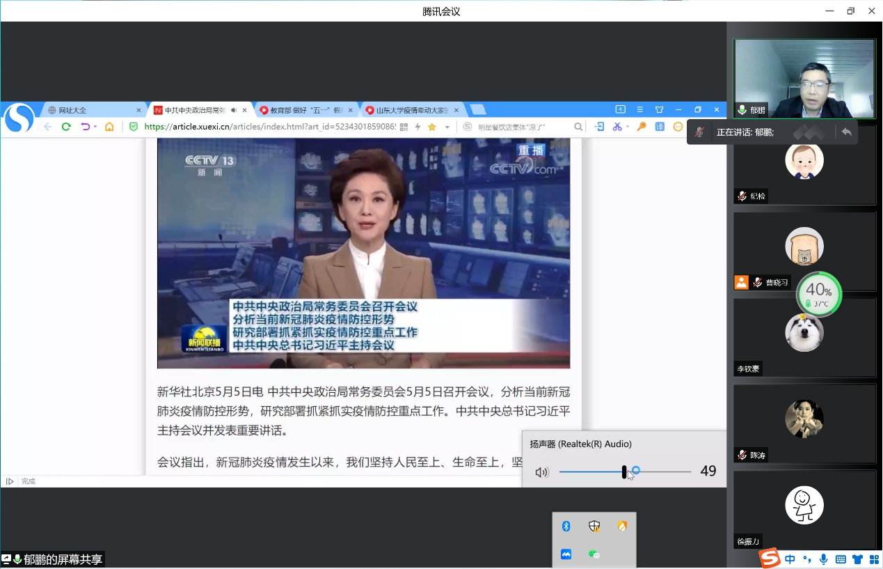 党课辅导以学校洪家楼校区改编歌曲《这校园那么多人》开篇,回顾校园封闭管理期间师生共抗疫情的动人故事,勉励大家遵守隔离期间规定,落实各项防护政策,争取早日战胜疫情,回归校园怀抱。