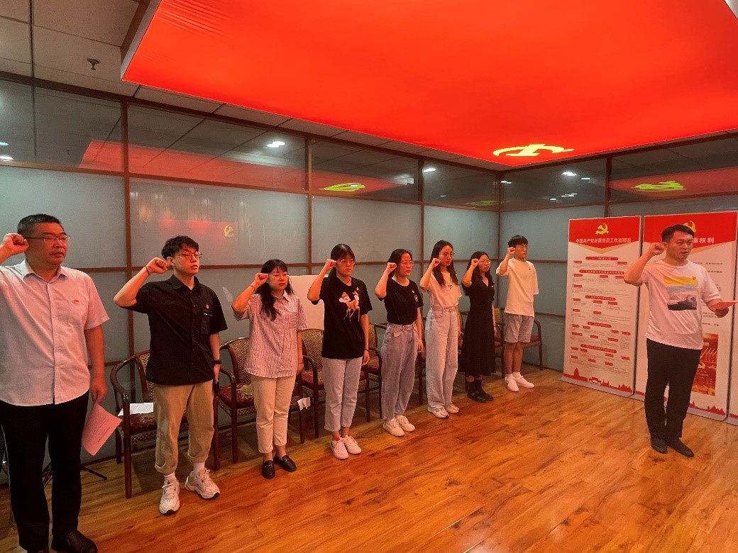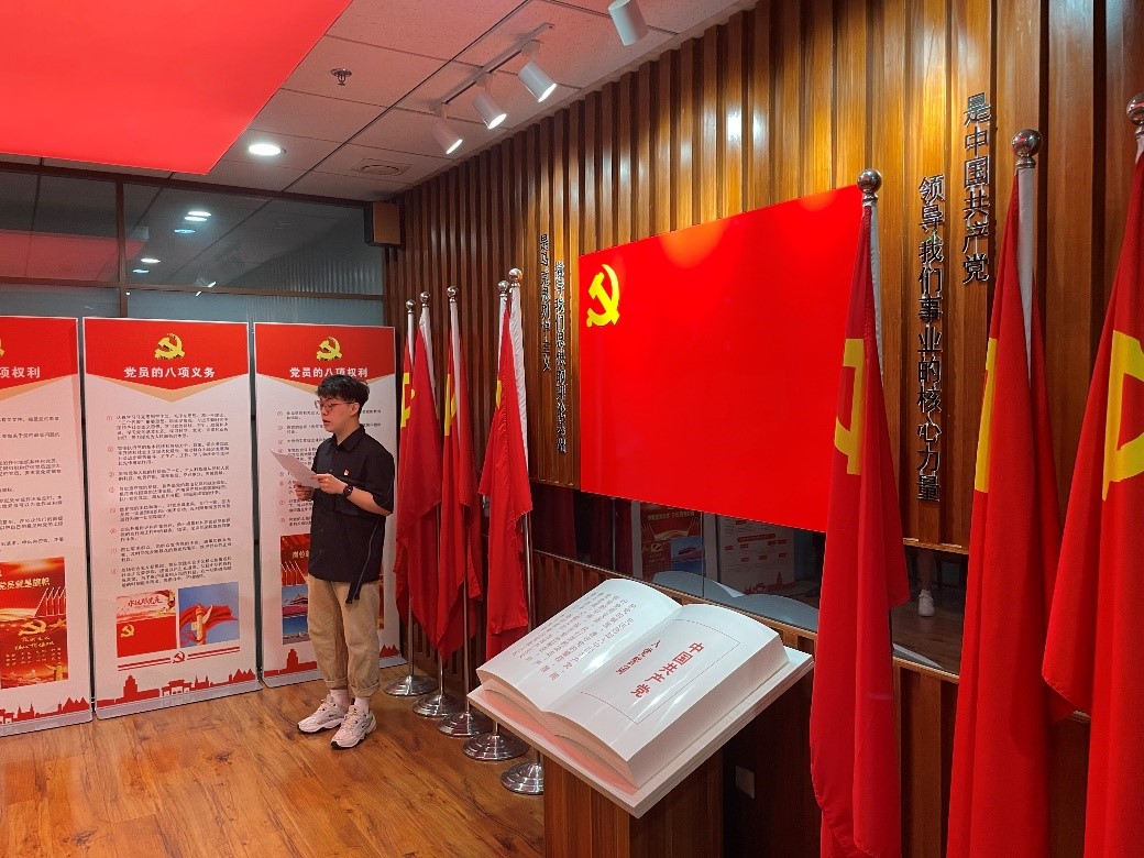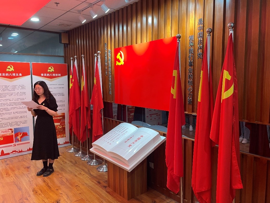 宣誓仪式在雄壮的《国际歌》歌声中拉开帷幕,徐舸、杨锐、宋以超、来永凤、胡海霞、穆薪宇在董林聪带领下,面向党旗举右手宣誓:“我志愿加入中国共产党,拥护党的纲领,遵守党的章程,履行党员义务,执行党的决定,严守党的纪律,保守党的秘密,对党忠诚,积极工作,为共产主义奋斗终身,随时准备为党和人民牺牲一切,永不叛党。”