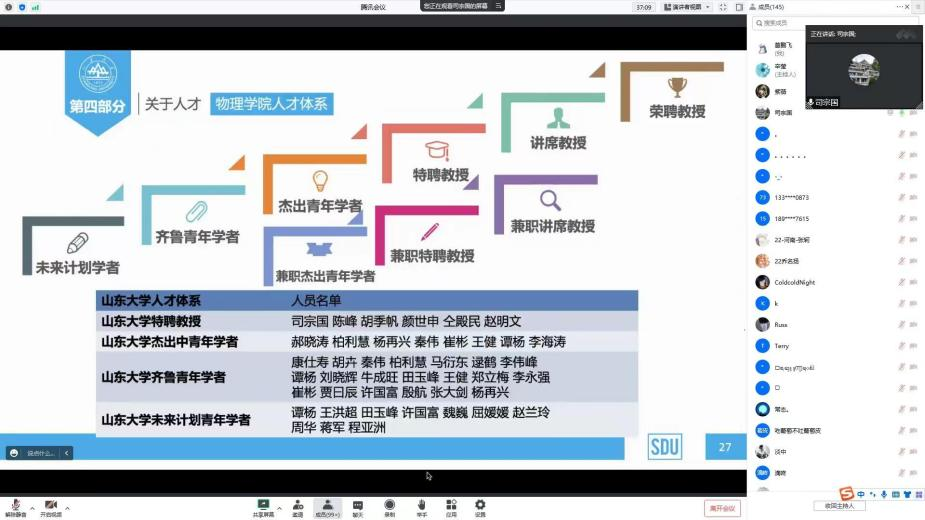 9月7日,物理学院线上组织2022级新生“入学第一课”暨“育贤讲堂”活动,学院院长司宗国、副院长秦伟担任主讲人,学院党委副书记辛莹主持活动,部分教师代表及全体2022级本科新生参与活动。