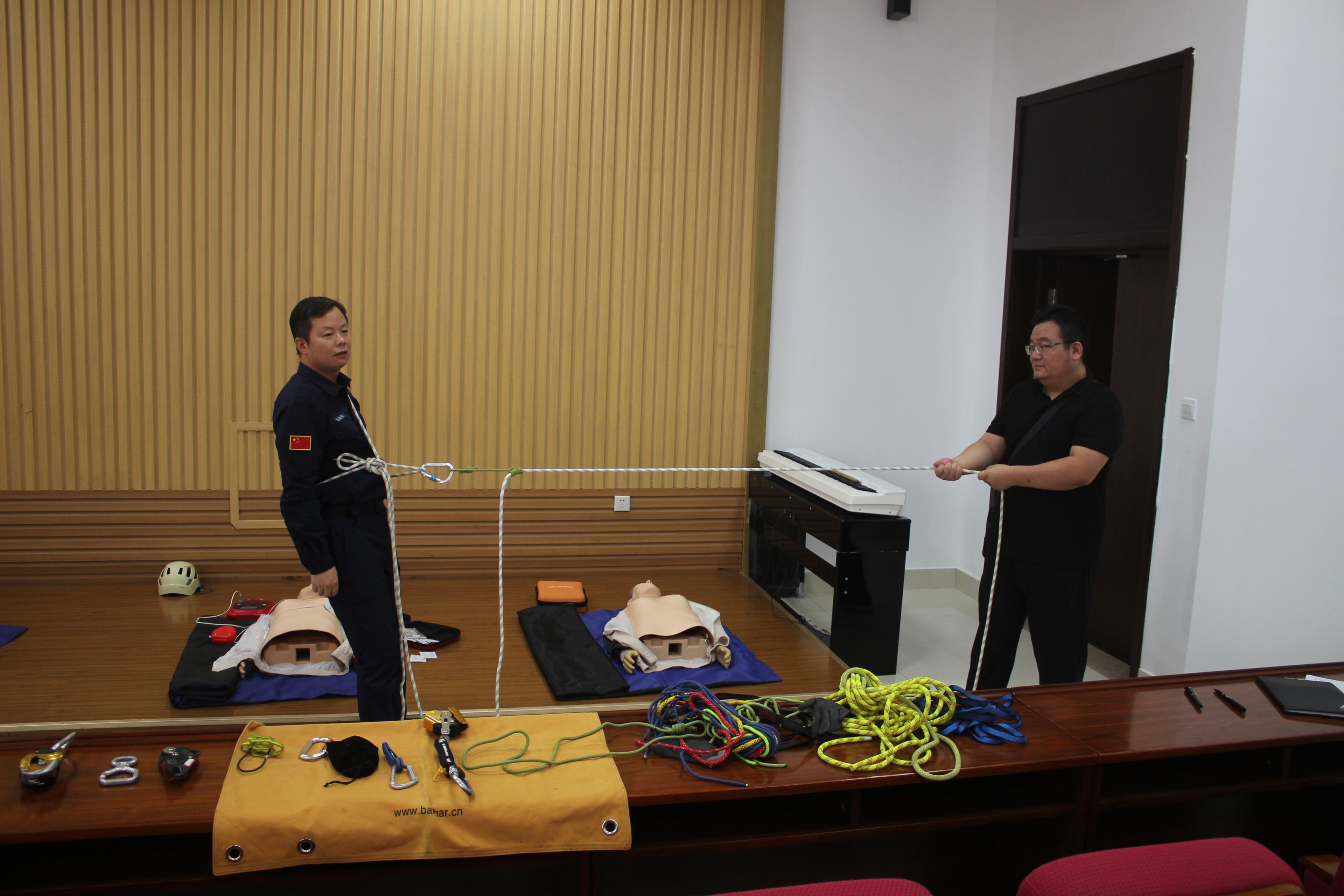 实验室应急救护演练的主要内容包括介绍实验室安全用电、心肺复苏和高空绳索演练。首先,演练教师介绍了安全用电的基础知识、物理学院实验室安全用电方面存在的主要问题以及物理实验室安全用电管理方面的措施,物理实验室安全用电管理方面的措施主要包括以下两个方面:规章制度和安全检查。其次演练教师讲解演示如何进行心肺复苏、如何使用AED除颤仪。心肺复苏的过程包括:意识判断、检查呼吸、松解衣服、胸外心脏按压、打开气道、人工呼吸、持续2分钟的高效率的CPR。同时介绍了中心校区AED除颤仪的具体位置以及如何根据AED除颤仪的提示进行急救。演练教师还指导师生模拟人心肺复苏训练并介绍心肺复苏的注意事项。最后演练教师讲解演示当实验室发生火灾如何利用绳索逃生,并具体介绍绳索的各种系法。参加的师生在演练教师的指导下练习各种绳索的专业系法。