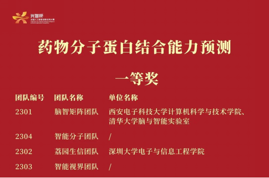 “兴智杯”全国人工智能创新应用大赛是由国家工业和信息部、科学技术部、深圳市人民政府共同主办,旨在进一步激发创新活力,促进人工智能核心技术突破和产业生态建设,推动人工智能与实体经济深度融合。本次行业赋能-药物分子蛋白结合能力预测专题赛旨在推动人工智能在药物筛选中的应用。