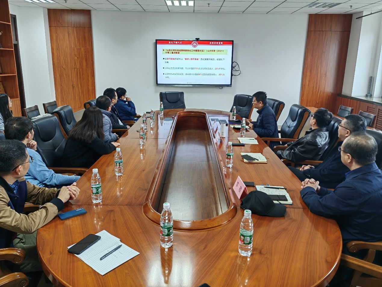 随后,孙海磊进行科技合作与成果转化政策宣讲,介绍了学校2022年的横向合作与成果转化情况,对国家和学校横向合作与成果转化政策进行了重点解读,阐述了产学研合作模式,针对科技成果转化流程及要点进行了详细解读,进一步营造良好的成果转化氛围。