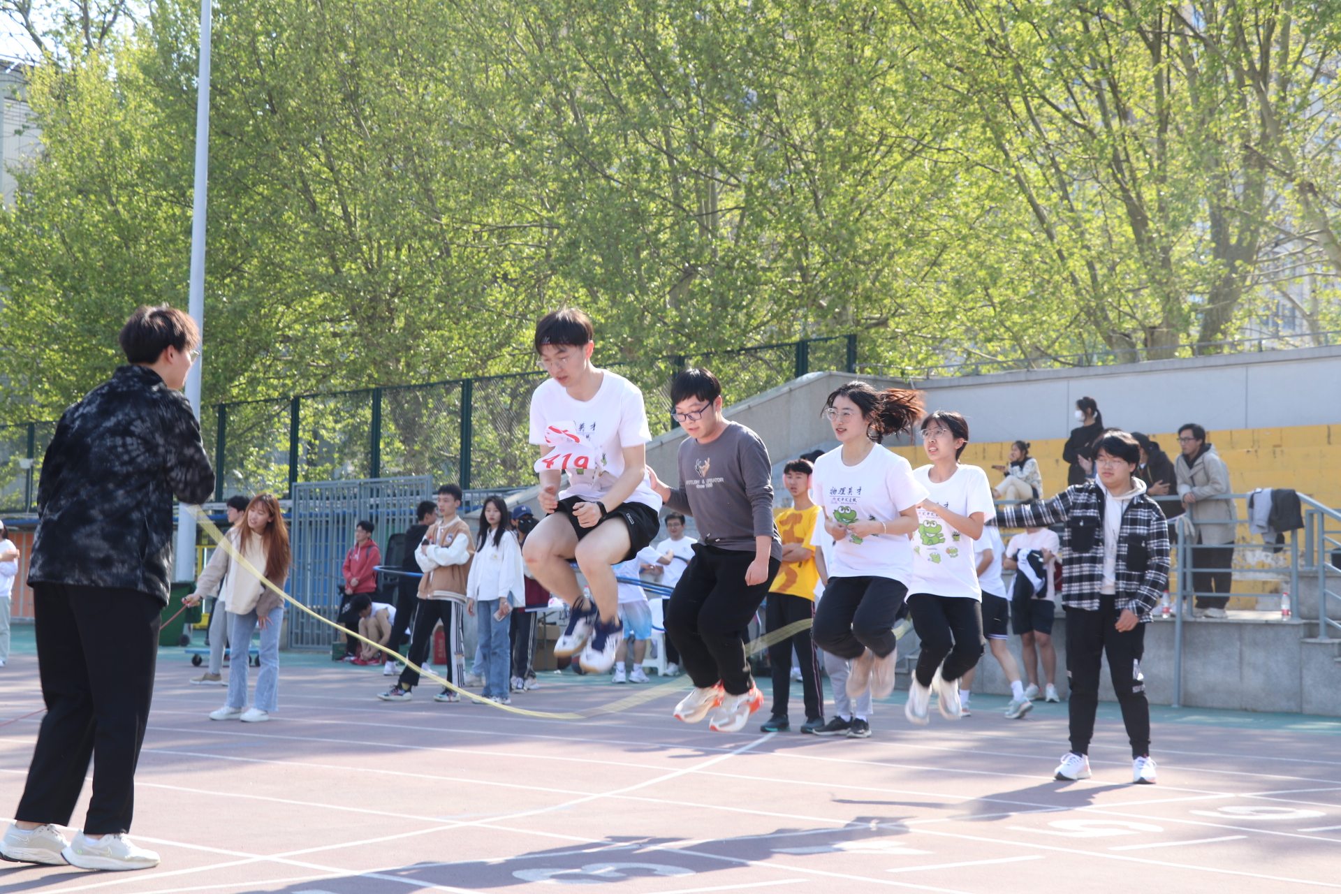 4月8日,物理学院2023年师生春季运动会在中心校区举行。物理学院院长司宗国、正处级辅导员张倩、党委副书记辛莹、部分学院教师代表及来自全院各年级的四百余名同学参加运动会。