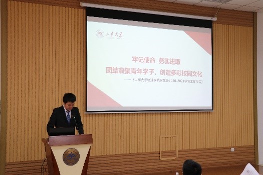 根据山大青字〔2021〕19号文《山东大学院级学生代表大会工作细则》,经报学院党委、团委批准和山东大学学生会组织备案,物理学院于6月5日在中心校区知新楼C座七层报告厅召开第一届学生代表大会。物理学院党委副书记辛莹,团委书记曹晓习,各年级兼职辅导员及研究生会主席团成员,来自本科各年级的六十余位代表参加会议。学院2020届学生会主席程炜钊主持会议。