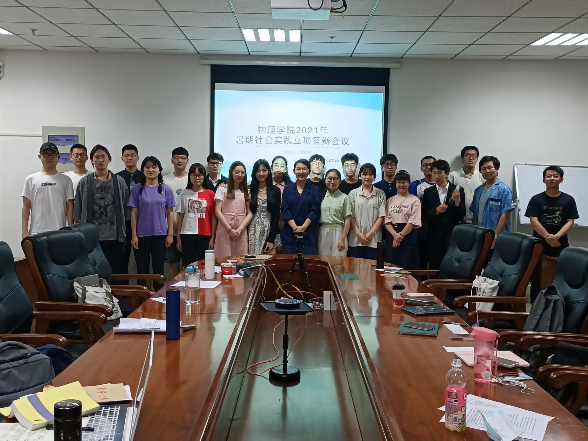 6月10日晚,物理学院在中心校区知新楼C座709会议室举行2020-2021学年学生暑期社会实践立项答辩会。物理学院团委书记曹晓习和学院学生兼职团委委员、校学生会代表以及各年级团支书代表担任本次立项答辩的评委。共十支社会实践团队参与了此次答辩。