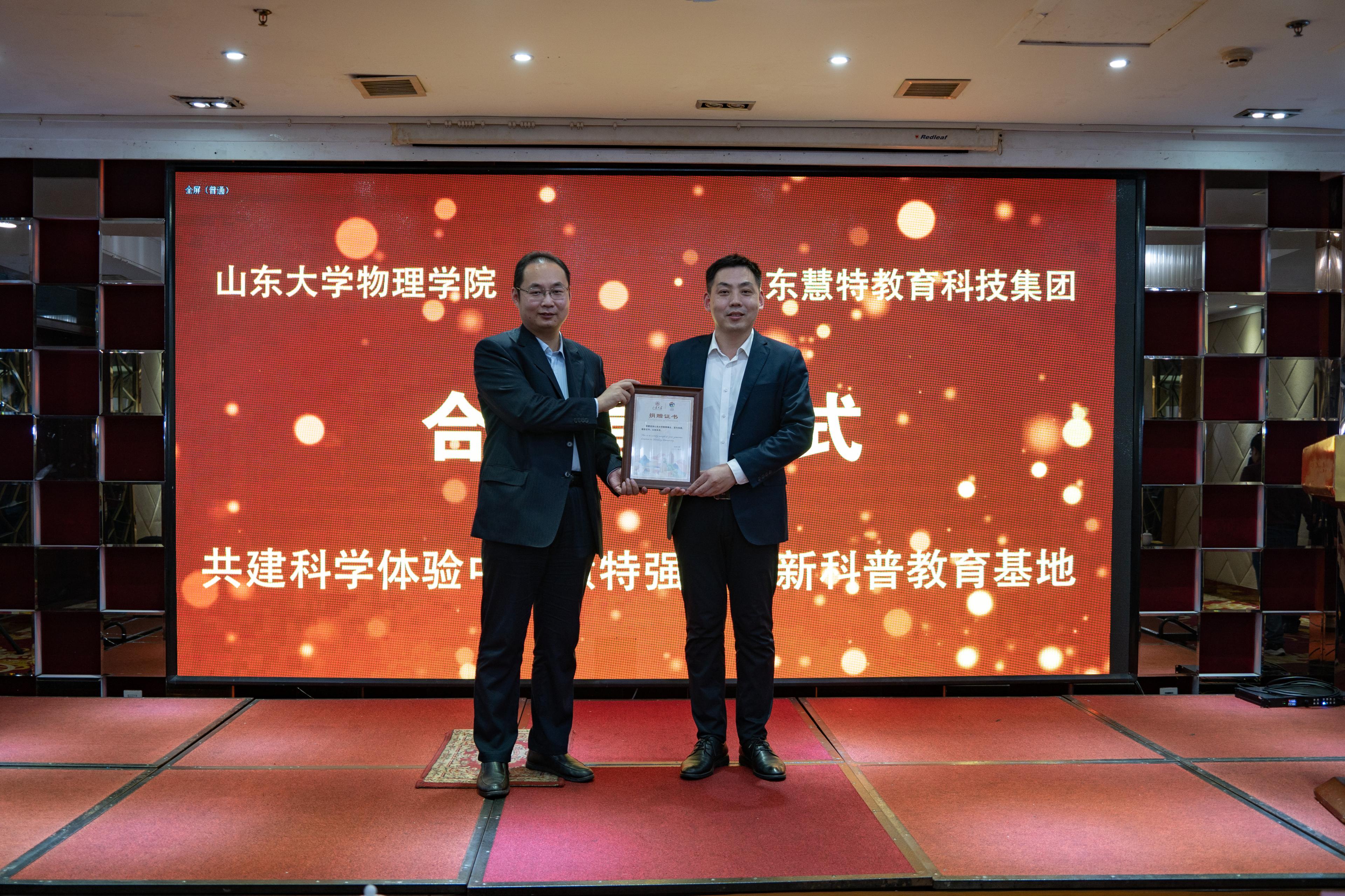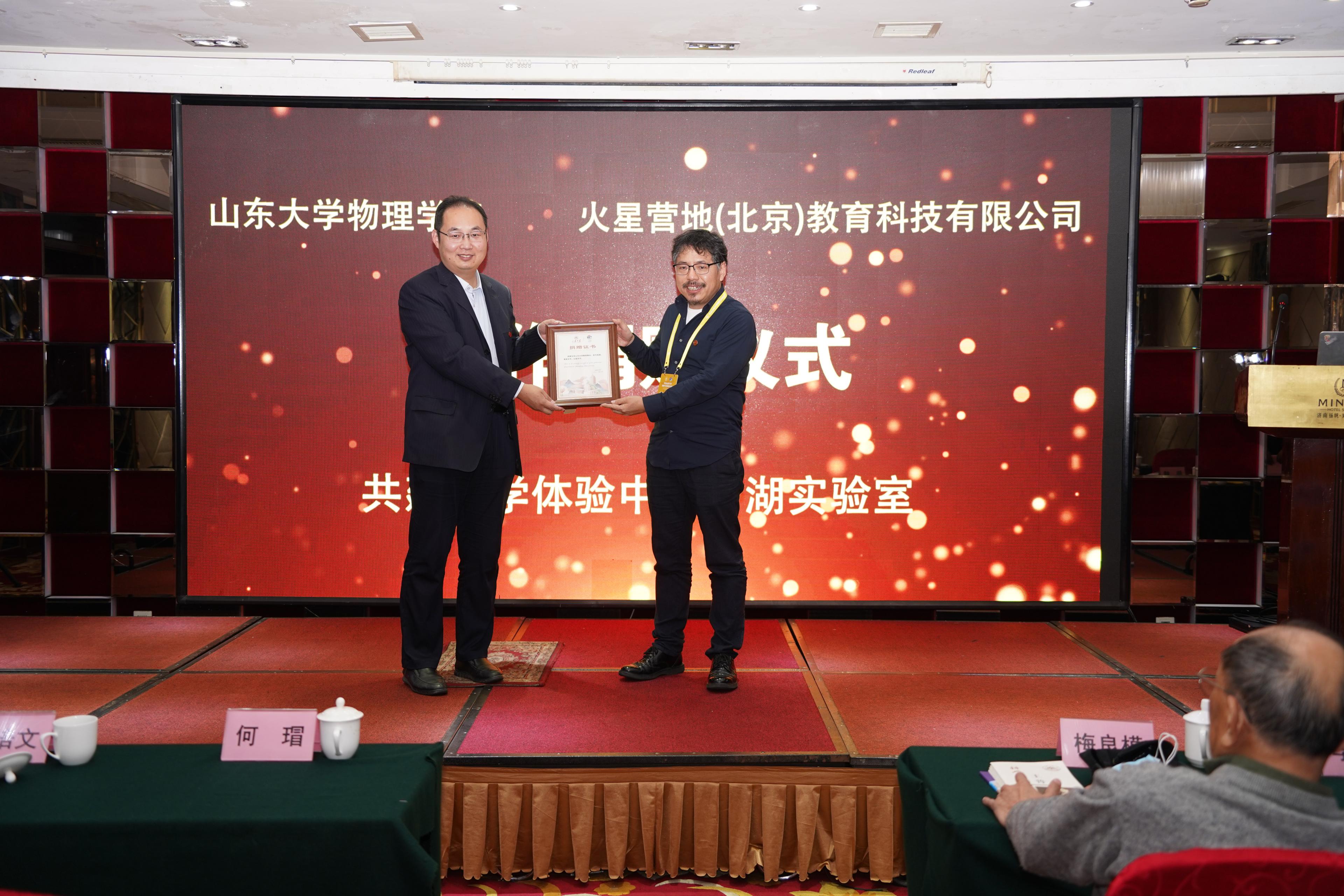 学院服务社会、广联校友,共谋发展。院长陈峰主持合作捐赠仪式。火星营地(北京)教育科技有限公司投入建设和捐赠资金120万元,共建物理学院科学体验中心冷湖实验室;山东慧特教育科技有限公司捐赠资金60万元,共建物理学院科学体验中心慧特强基创新科普教育基地。