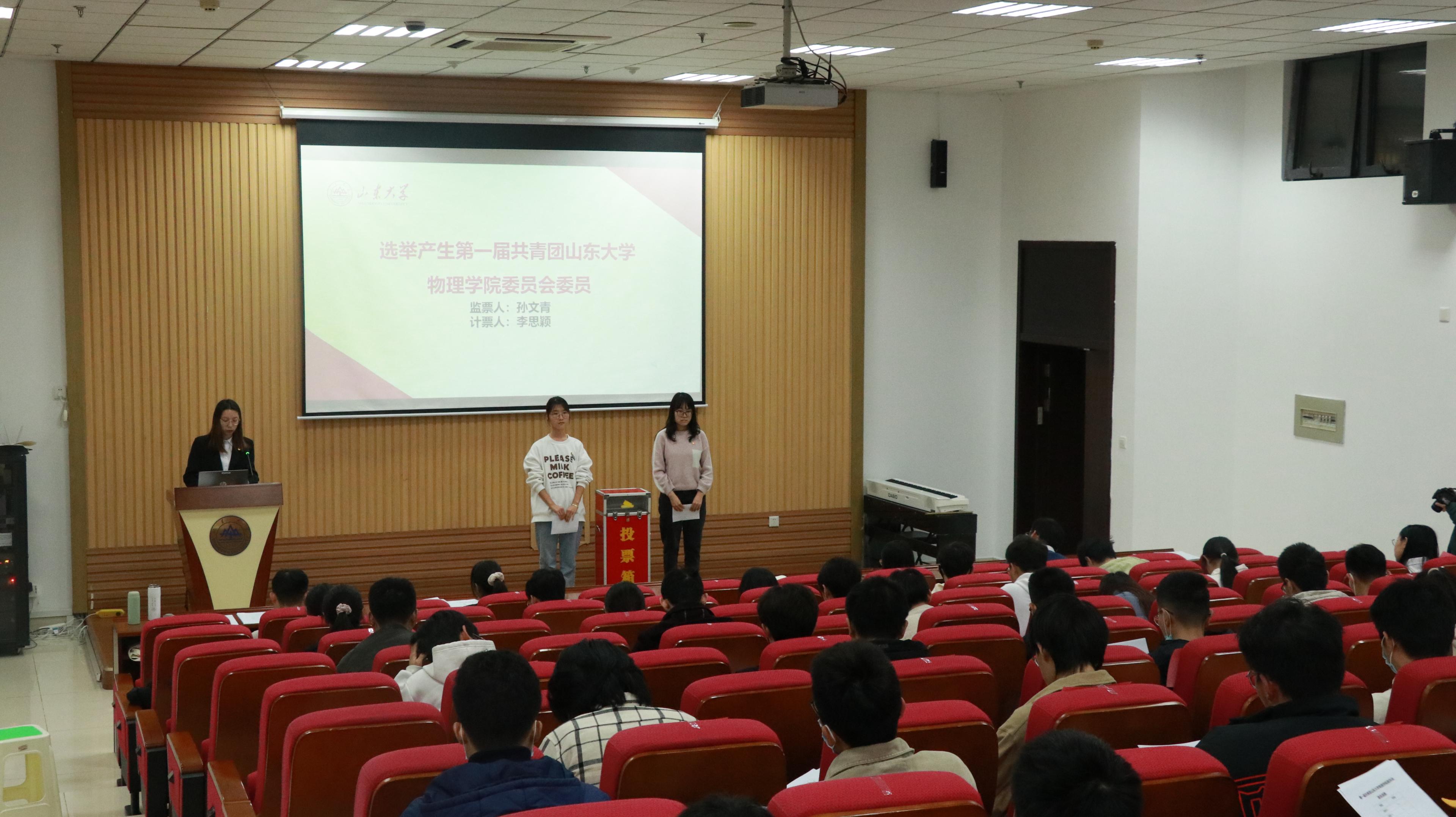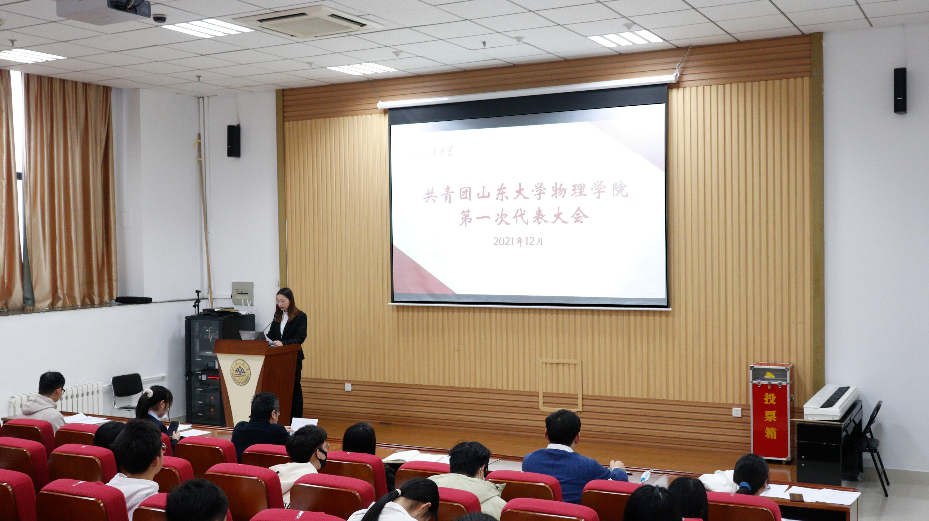 根据《中国共产主义青年团章程》《中国共产主义青年团基层组织选举规则(暂行)》的规定,按照山大青字〔2021〕30号 《关于召开共青团山东大学第十七次代表大会的预备通知》要求,经报学院党委、学校团委批准,共青团山东大学物理学院第一次代表大会于12月9日在中心校区知新楼C座七层报告厅顺利召开。物理学院党委书记郁鹏、团委书记曹晓习、辅导员葛鹏飞及来自本硕博各年级的七十余位团员代表参加会议。2019级基地班团支书郑凯媛主持会议。