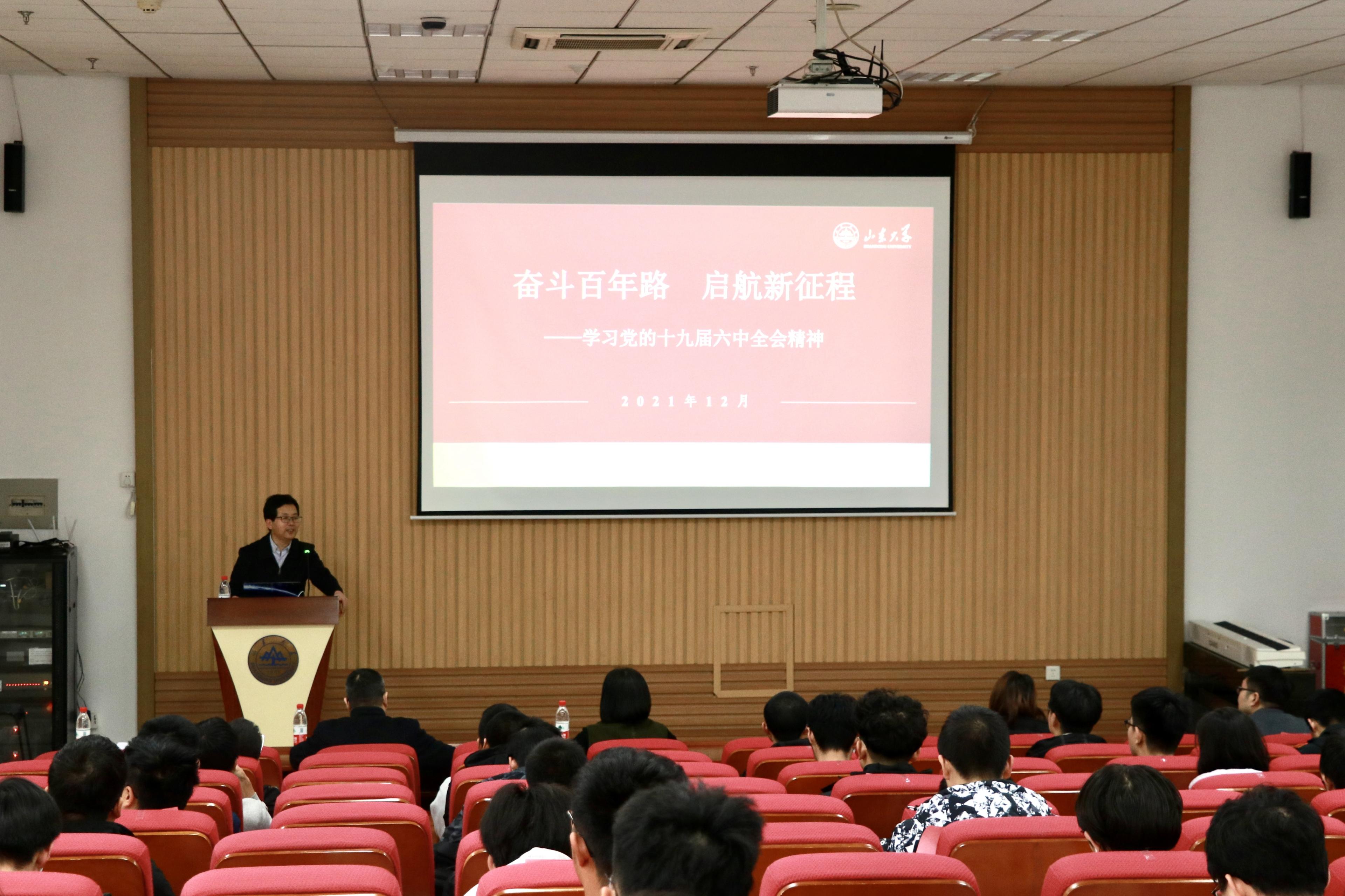 陈宏伟强调,要深刻领会《决议》对党领导人民进行伟大奋斗的宝贵历史经验集中概括的“十个坚持”。他生动描述了山大物理系和光学系的发展历史和趣闻轶事,勉励同学们紧跟国家战略脚步,将自己的发展融入时代潮流,在学习和实践中掌握知识,激发潜能,逐步成长为基础学科拔尖创新人才,做担当民族复兴大任的时代新人。