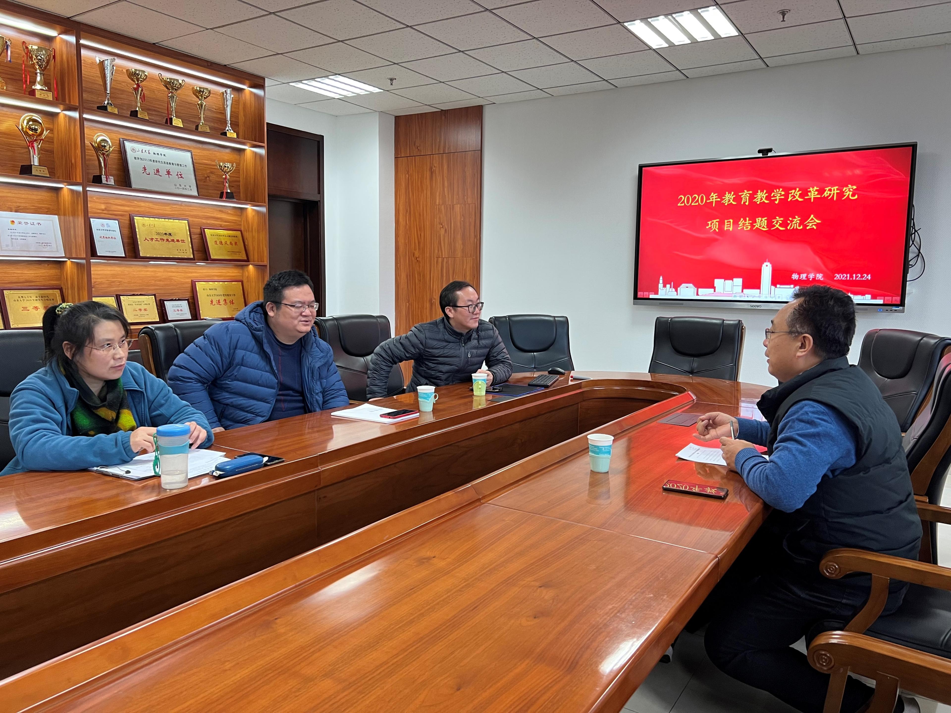 为进一步深化本科教育教学综合改革,提高教学质量,落实《关于做好山东大学教育教学改革研究项目立项和管理的通知》要求,2021年12月24日下午,物理学院召开“2020年教育教学改革研究项目结题交流会”,对学院2020年教改项目进行结题验收。物理学院副院长司宗国主持会议,教改项目负责人参加了会议。