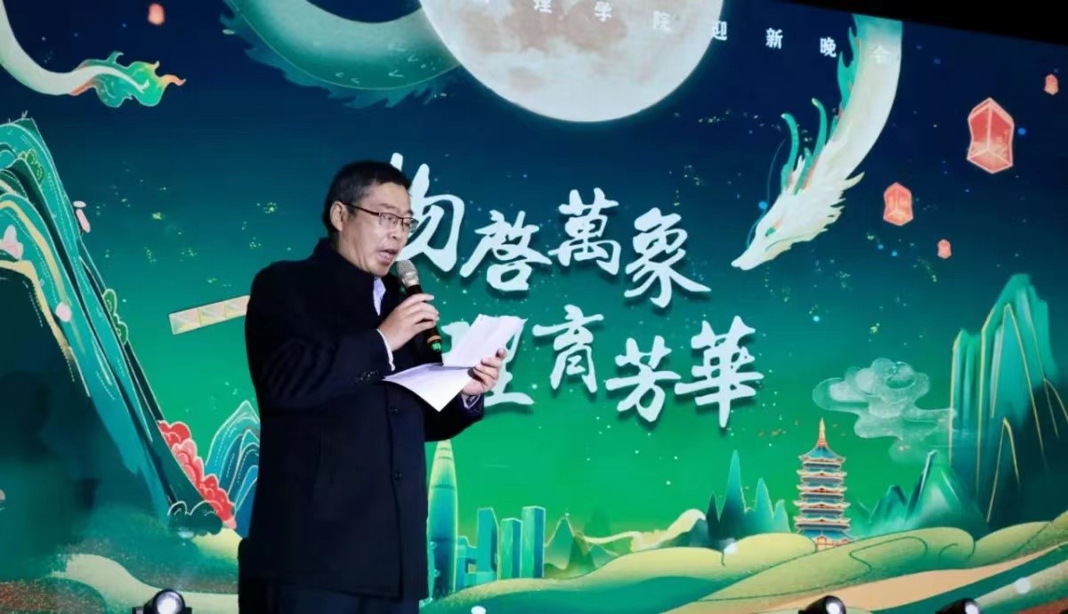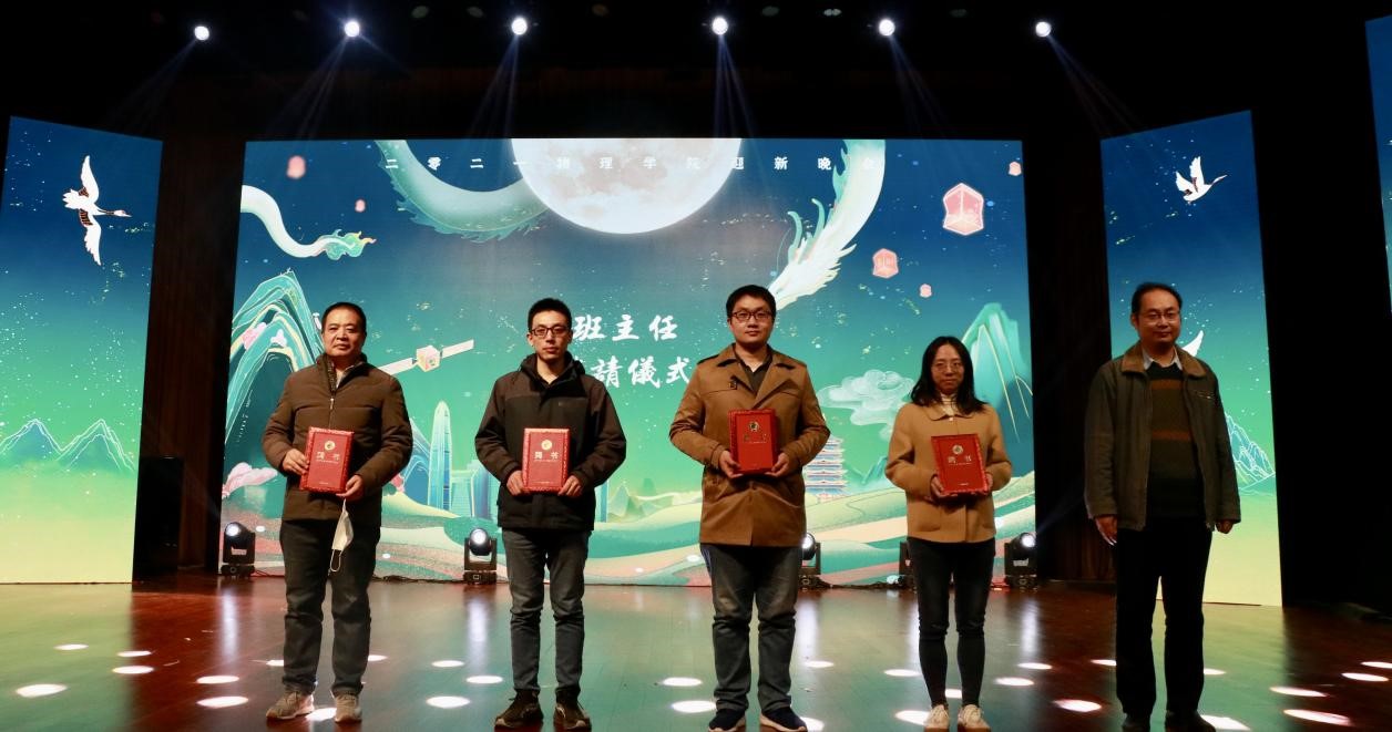 萤火虫乐队用热烈的开场曲拉开了晚会的序幕,主持人依次介绍到场领导及嘉宾。物理学院党委书记郁鹏为晚会致辞,他首先表达了对2021级新同学的欢迎,并对同学们提出殷切期望。他指出,同学们要树立远大理想,涵养家国情怀;努力学习知识,争做时代新人。物理学院院长陈峰为2021级新生班主任颁发聘书。