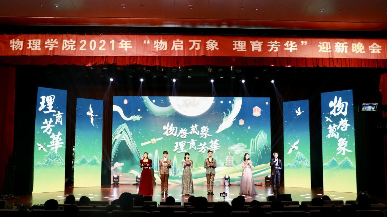 11月19日,物理学院2021年“物启万象,理育芳华”迎新晚会在中心校区音乐厅成功举行。物理学院党委书记郁鹏、院长陈峰、党委副书记辛莹,教师代表李吉超、于晓东、屈媛媛、刘扬,辅导员代表曹晓习、陈璐瑶以及2021级部分学生参加本次迎新晚会。