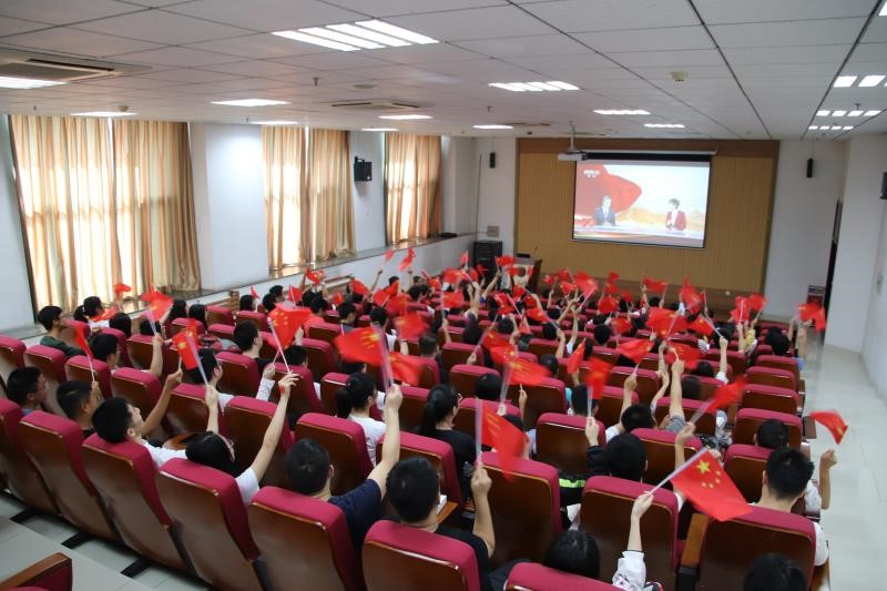 上午10时整,阅兵仪式正式开始。当激情高亢的《义勇军进行曲》响起,全体观看师生肃然起立,伴随着国歌的激昂旋律,每个人都用洪亮而饱含深情的声音吟唱。中共中央总书记、国家主席、中央军委主席习近平发表重要讲话。在讲话结尾,他高呼,伟大的中华人民共和国万岁!伟大的中国共产党万岁!伟大的中国人民万岁!这三个“万岁”,气壮山河,豪情万丈,令在场师生们热血沸腾,教室中响起热烈的掌声。阅兵开始后,受阅部队在长安街列阵,光荣接受检阅。在分列式表演中,15个徒步方队、32个装备方队和12个空中梯队和联合军乐团等组成的受阅队伍在屏幕上相继亮相。方队步伐整齐,铿锵有力,队容严整;将士们精神饱满,士气高昂,神色自豪;装备方队和空中梯队阵容庞大,气势磅礴。阅兵结束后,10万多名各界群众参与的群众游行浩浩荡荡的开始了,此次游行以时间为轴线分为“建国创业”“改革开放”“伟大复兴”三个部分,带着大家一起回顾了新中国成立70周年的成长和奋斗历程。