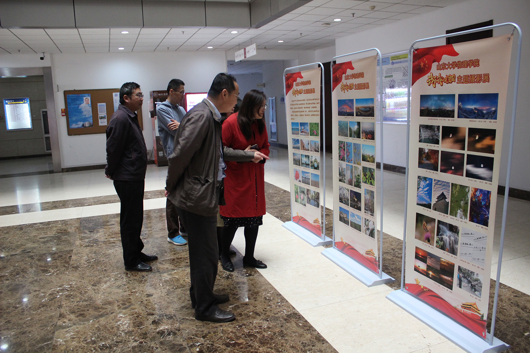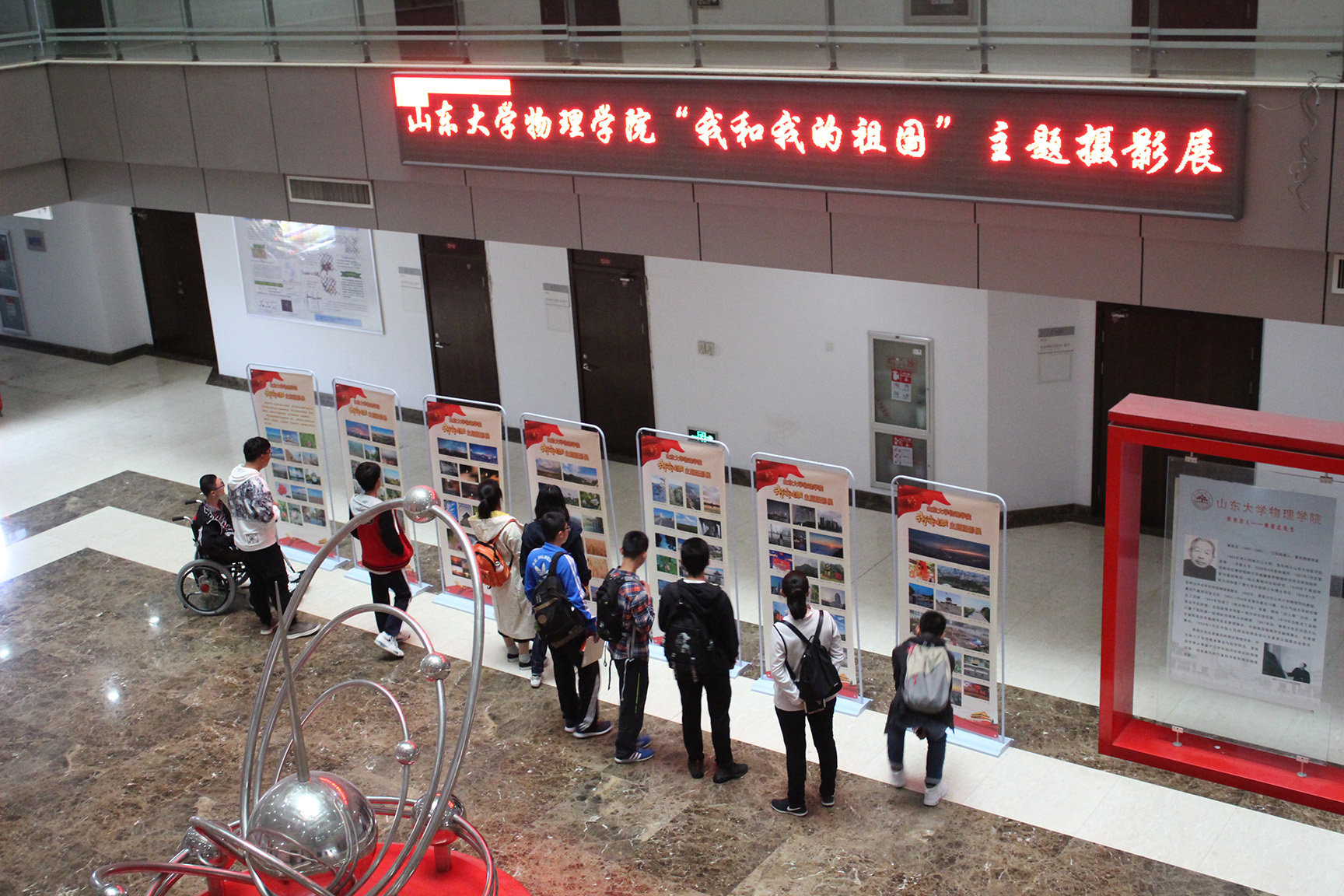 10月8日,物理学院“我和我的祖国”主题摄影展在知新楼C座一楼大厅开展,作品将在中心校区和兴隆山校区进行巡展。