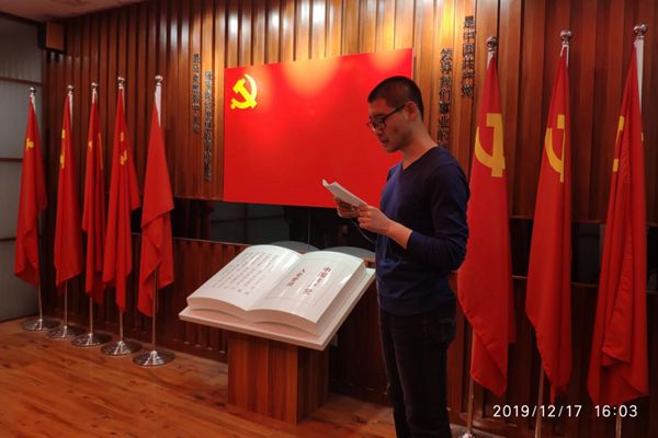 12月17日,物理学院2019年学生党员入党宣誓仪式在知新楼C座二楼党员活动室举行。学院组织员于新好出席本次仪式。仪式由学院本科生党支部书记高世杰主持,2019级博士生党支部书记张彬担任领誓人。