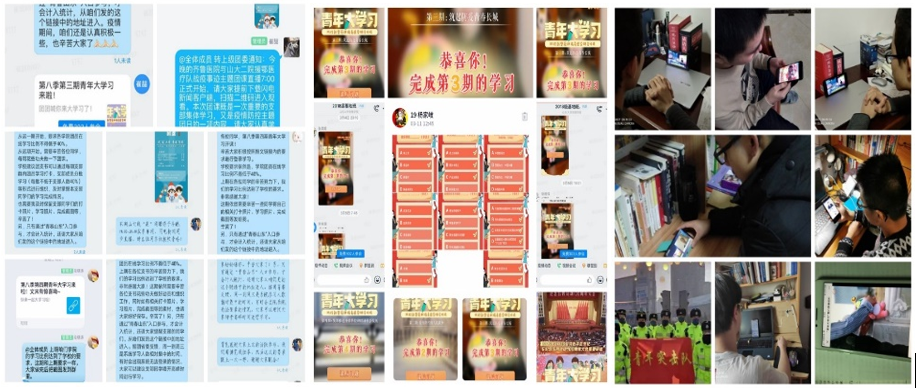 做好物院在鄂学生临时团支部团员的组织动员工作,号召临时团支部团员积极参与线上学习讨论、互动交流,分享战“疫”抗“疫”心得,开展结伴学习互助,展现在鄂青年团员的良好精神风貌。黄同学说,“咸宁虽然已经连续20多天没有新增了,管控依然没有松懈。我相信,这才是对人民负责的政府的严谨态度,每一个中国人都在2020这个‘年’中团结在了一起”。吴同学说,“此次防控疫情,我最大的感触就是国家强大的动员能力。疫情期间,大家也都很理性、很乐观,都能在家做好居家生活,支持国家的决定。越是艰难时期,我们越是能深刻的感觉到每个中国人都紧紧的团结在一起。”周同学说,“作为生于斯长于斯的武汉伢从未见过武汉如此的寂静,此次疫情也更让我珍惜日常生活的那份平静。门口的油菜花和月季花都开了,春天来了,一切都充满希望,一起加油!”张同学说,“这段时间基本一直宅在家里,最大的感触就是我们生在伟大的中国,生在一个和平富强的年代,真的很幸运”。柯同学说,“在这场众志成城、同仇敌忾的战斗中,中国人民的团结信念和责任感令世界印象深刻。这也从侧面体现了我国社会主义制度的优势和中华民族的强大精神。”