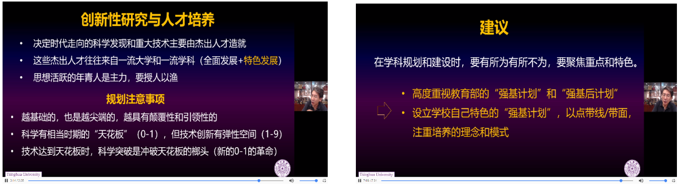 随后,薛其坤院士在报告中着重强调了人才的重要性,以及学科规划、培养理念的重要性。我院19级硕士生李鑫颖表示:“现在正处于第二次量子革命的伊始,作为第五次技术革命对社会和经济将会产生很大的影响。谷歌的里程碑式的实验揭示出量子计算机是未来量子信息技术的核心,这涉及了很多基础学科,那么对于研究生教育应该怎么做,有了很大的挑战。而富有活力的年轻人是主力,因此设立了强基计划。要在夯实基础学科人才培养质量的基础上,加强跨学科,交叉型人才培养。”