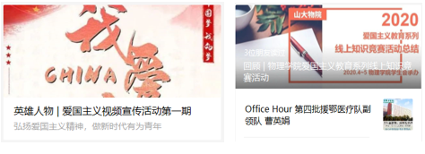 弘扬爱国主义精神,做新时代有为青年。特殊毕业季,学院在“物说新语”学生工作微信公众号上推出“弘扬爱国主义精神,做新时代有为青年”爱国主义教育系列活动,邀请2020届本科毕业生参与“不变中国心”主题拍摄、爱国主义视频宣传及爱国主义教育线上知识竞赛。进一步在毕业生中弘扬爱国精神、增强爱国意识,号召青年学生学习疫情防控中涌现的英雄人物的无私奉献、敢于牺牲的精神品质,激励学院2020届毕业生将个人未来发展进步与国家建设、民族复兴相融相和。