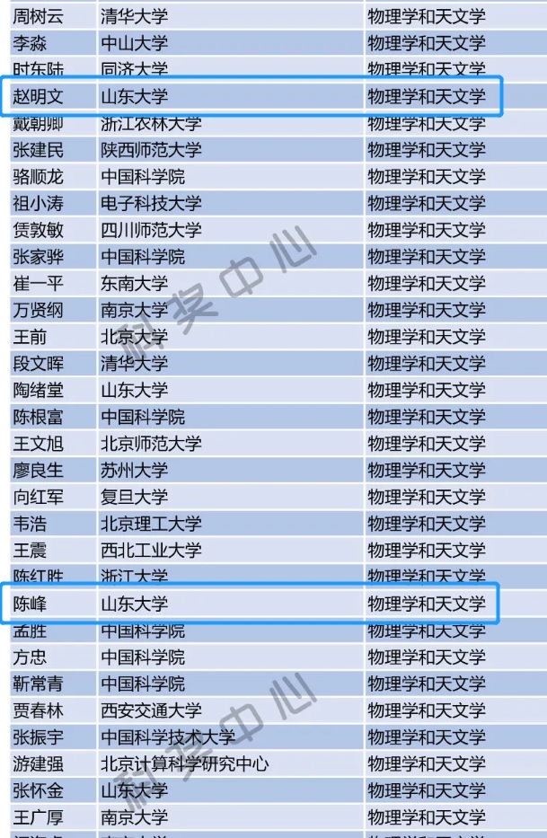 2019年中国高被引学者榜单中,物理学与天文学学科中共有134名高被引学者入选,其中山东大学有4名学者入选。