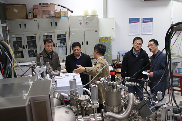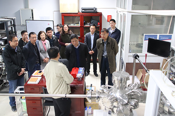 郝晓涛简要介绍了学院的发展情况,重点就学院的学科建设、人才队伍、科研情况、平台基地等方面作了汇报。然后参观了自旋电子学实验室,详细了解了实验室的团队架构、特色以及取得的研究成果,还重点调研了实验室的真空红外与分子束外延联合系统、超高真空磁控溅射设备,了解了设备的搭建过程、在科学研究中发挥的作用和潜在应用前景,对基础研究在推动社会经济效益发展方面作了探讨。另外,参观了微电子学院的纳电子工程研究中心实验室。
