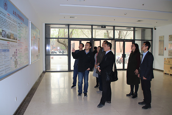 2018年3月29日,山东省科技厅副厅长于书良、基础研究与科技条件处陈成刚处长一行来物理学院调研指导工作。山东大学科学技术研究院张玉生、孙乐军,我院郝晓涛副院长,副书记张倩、吴天柱,以及康仕寿、徐明春等多位教授参加了调研活动。