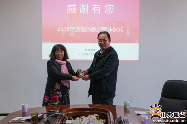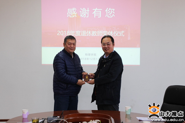 郁鹏表示,荣休典礼不只是简单的仪式,包含了对退休教职工们的感激之情,感谢他们对物理学院所作的奉献。他希望荣休老师们在享受快乐退休生活的同时能发挥余热,继续用智慧和热忱为学院发展建良言、献良策,支持学院各项工作。