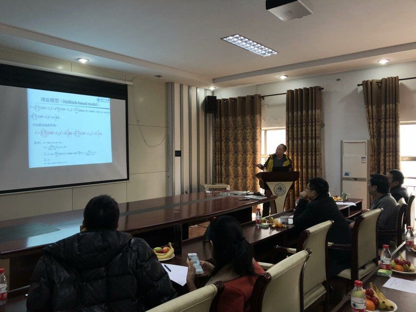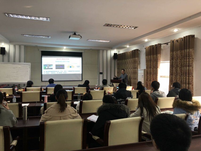 元冰副教授最后作了题为“细胞膜与多肽-蜂毒肽抗菌的分子机制及增强”的报告。报告的开始,元冰副教授介绍了抗菌肽对细胞膜的破坏作用以及它的工作机制,接着详细介绍影响抗菌肽对细胞膜破坏效率的因素,揭示了氧化石墨烯层间距对于抗菌肽的重要性,最后介绍了抗菌肽对哺乳动物细胞是否有毒性以及该领域的研究方向做了展望。