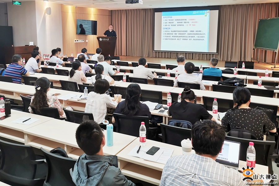 物理学院教师蒋军、逯鹤以及工程训练中心教师曹利华分别作了《电磁学》《原子物理》《物理创新实验》三门课程的教学大纲修订、教学示范案例编订、推广应用案例编订的具体工作汇报。在项目组任务指引下,山东大学校选取物理专业相关课程,将创新方法融入专业课程学习,实现专创融合。