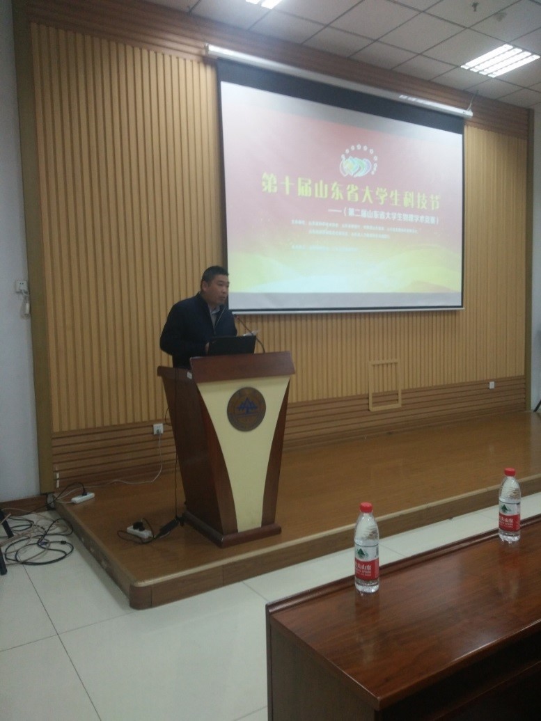 中国大学生物理学术竞赛,是中国借鉴国际青年物理学家锦标赛(International Young Physicists’Tournament,简称IYPT)模式创办的一项全国性赛事,旨在提高学生综合运用所学知识分析解决实际物理问题的能力,培养学生的开放性思维能力及团队协作意识。参加本次竞赛的有山东大学、中国海洋大学、哈尔滨工业大学(威海)、青岛理工大学、山东理工大学、临沂大学、鲁东大学共七所高校八支代表队,另有青岛大学、齐鲁工业大学、聊城大学、山东建筑大学、齐鲁师范学院五所高校派师生前来观摩。竞赛裁判委员会由来自参赛高校的十余位教师组成,其中物理学院赵明文、韩广兵、苏文斌和卢红旺老师受邀作为裁判参加比赛。