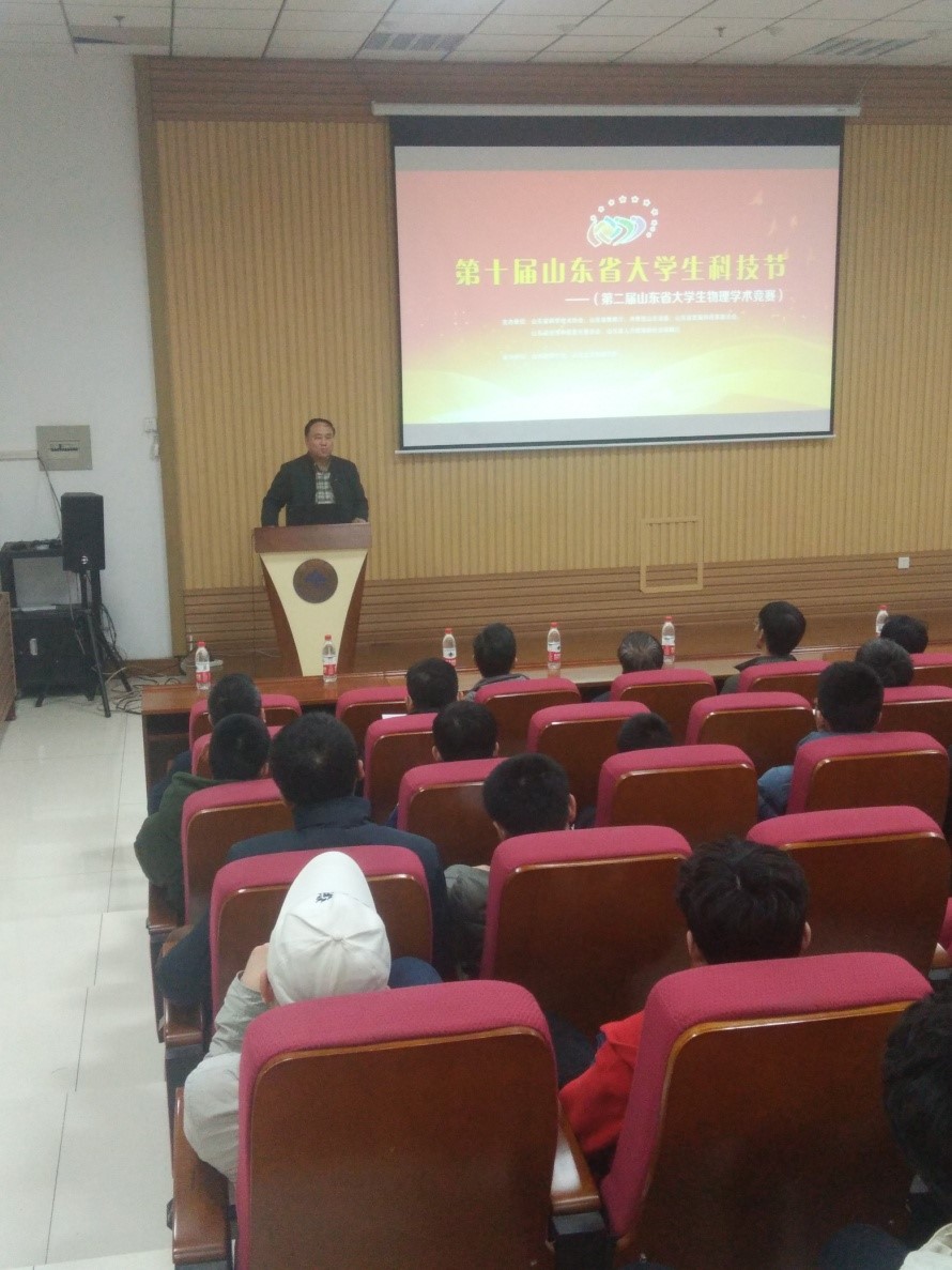 2019年4月12日至14日,由山东省科协、山东省教育厅、山东省团省委、山东省发改委、山东省经信委、山东省人社厅主办,由山东物理学会、山东大学物理学院(物理国家级实验教学示范中心)承办的中国大学生物理学术竞赛(China Undergraduate Physics Tournament,简称CUPT)山东省省赛在山东大学物理学院成功举办。赵明磊副院长主持开幕式,郁鹏书记代表物理学院致开幕词,山东物理学会副理事长、秘书长张承琚教授代表省物理学会欢迎各校师生参与本次大赛。