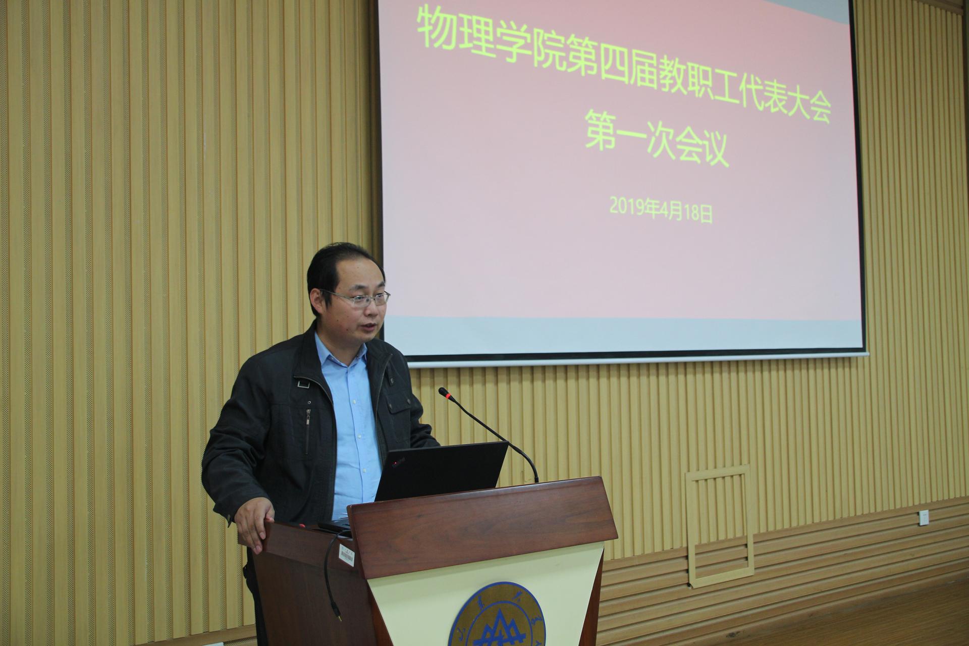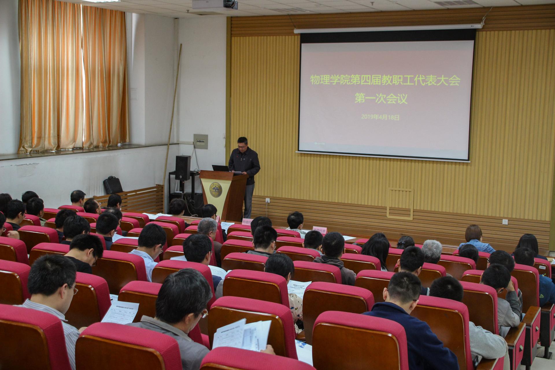 4月18日下午,物理学院在中心校区召开第四届教职工代表大会第一次会议。会议由学院工会主席吴厚政主持。