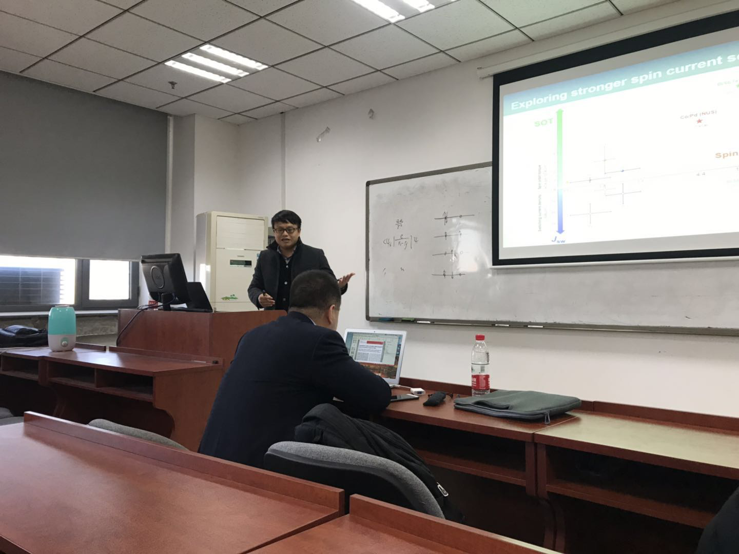 1月15日,受颜世申教授邀请,同济大学东方学者丘学鹏教授访问物理学院并作题为“磁性异质结中自旋轨道矩的界面和体效应调控”的学术报告。报告由颜世申教授主持。