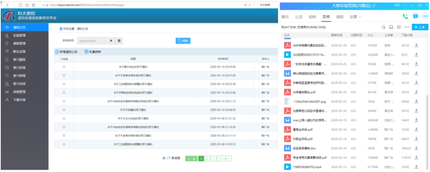 精心准备,开展线上教学。随着疫情的延长,学生短时间内不能返校,而实验中心原有的仿真实验系统为局域版本,学生无法在校外网使用。为了学生可以在家使用物理实验仿真实验系统进行预习和做实验,实验室与大学物理虚拟仿真实验系统制作单位联系,获得了对方的大力支持,提供免费使用网上系统,进行实验教学活动。徐建强和韩广兵老师首先开始学习、熟悉科大奥锐虚拟仿真实验系统,根据原有课表实际情况对相关实验项目进行了改进,制定了仿真实验简易操作说明发放给上课老师和学生,并和老师们开会讨论实施细节和方法,重新组编所有实验预习内容、制定所有实验的实验报告书写模板和评阅标准;依托虚拟现实、人机交互和网络通信等技术,将课程内容与虚拟仿真实验平台密切联系,面向学生全面开放力、热、光、电、近代物理相关实验项目20个。在帮助学生完成既定课程内容之余,也鼓励和帮助学生自主学习、自主实验和探究。