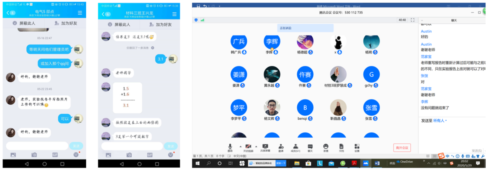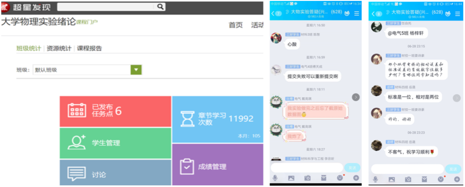 前期充分的准备工作和老师们的辛勤付出,大学物理实验课程的线上教学取得了显著成果。截至2020年7月10日,学生已通过虚拟仿真实验平台完成本学期90%的实验项目;学习通上关于误差理论的视频已观看近12000次;课程答疑群内,教师和学生的互动答疑贯穿整日,学生们的学习热情很高;在课下,学生也更愿意投入时间去设计自主实验,撰写报告、进行误差分析和讨论。