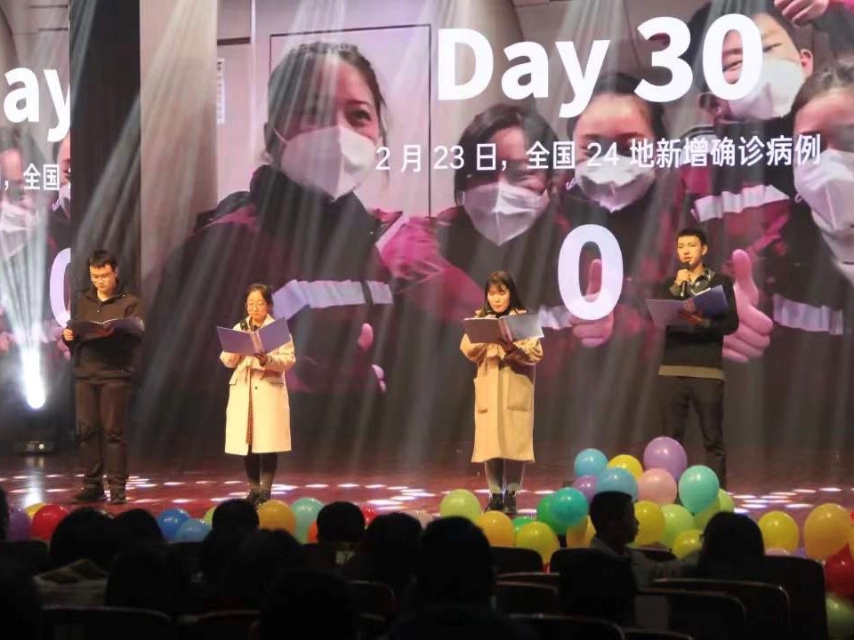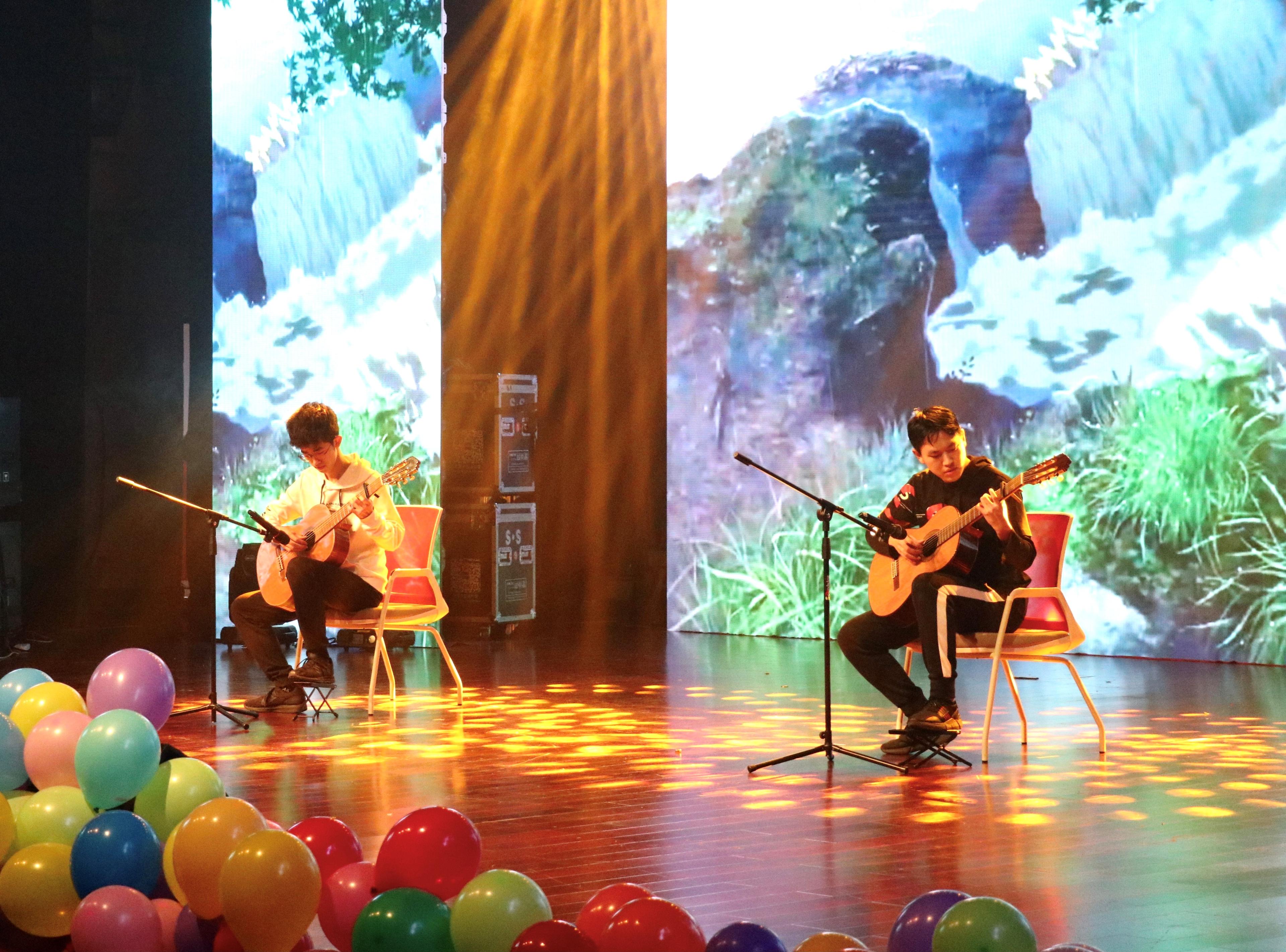 19时晚会正式开始。物理学院党委书记郁鹏致辞,他首先表达了对奋战抗疫前线工作人员的敬佩和感谢,号召同学们积极配合学校各项措施共同维护安全和谐的校园环境。同时,他向20级新生提出了“树立理想,脚踏实地”“修炼内功,提升能力”“胸怀天下,勇于担当”,表达了对同学们美好未来的殷切期许。接着,主持人依次介绍了到场来宾,并表达了对本次晚会的独家赞助——苏州伊欧陆系统集成有限公司的深挚感谢。于茫茫人海中相遇实属不易,一首温情的《天外来物》拉开了晚会序幕,用歌声传达出物院学子对情谊的理解。歌能抒志,舞可传情,舞蹈类节目《Kill this love》《I can’t stop feeling special》《不帅不要看》以及歌唱类节目《奇妙能力歌》《爱情转移》《lemon》《女儿情》《radioactive》等引来观众掌声不断,使现场气氛迅速升温。语言类节目更是此次晚会的重头戏,欢乐之余更给观众带来了思考与感动:话剧《我叫安德烈》演尽战争中的人性善恶和人间悲喜;幕布剧《那些年的小美好》用光影流转记录了美好青春;小品《TF girls》用滑稽的表演令观众时时捧腹;诗朗诵《因为有你》以诗战疫,致敬奋战在抗疫一线的所有工作人员。